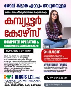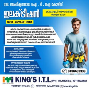The Kings Private ITI in Kottarakkara was established to provide the top quality training for young individuals aspiring to become technicians. They can realise their greatest potential there and acquire the skills necessary to become devoted, competent technicians.